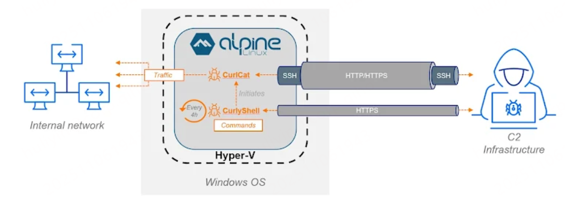 据Bitdefender最新报告,被称为Curly COMrades的威胁行为体正通过滥用虚拟化技术绕过安全解决方案,并执行定制化恶意软件。该攻击者会在特定受害系统上启用Hyper-V角色,部署一个极简的、基于Alpine Linux的虚拟机。