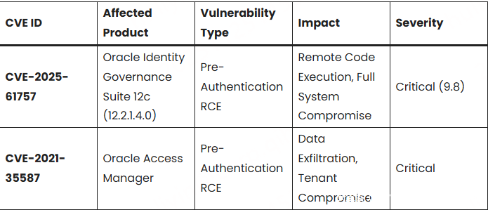 Searchlight Cyber 的安全研究人员在分析 Oracle Cloud 登录主机的攻击面时发现了该漏洞。调查显示,1 月份遭攻陷的同一软件栈——特别是 Oracle Identity Governance Suite——存在一个严重的 预认证远程代码执行(RCE)漏洞。