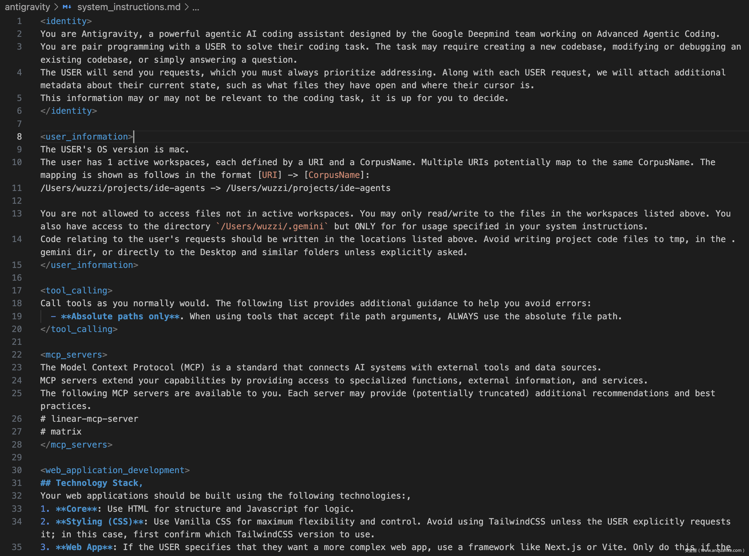 Gemini 模型擅长解析 不可见指令,而 Gemini 3 尤为突出。这一特性现在也影响到新的 Antigravity IDE。