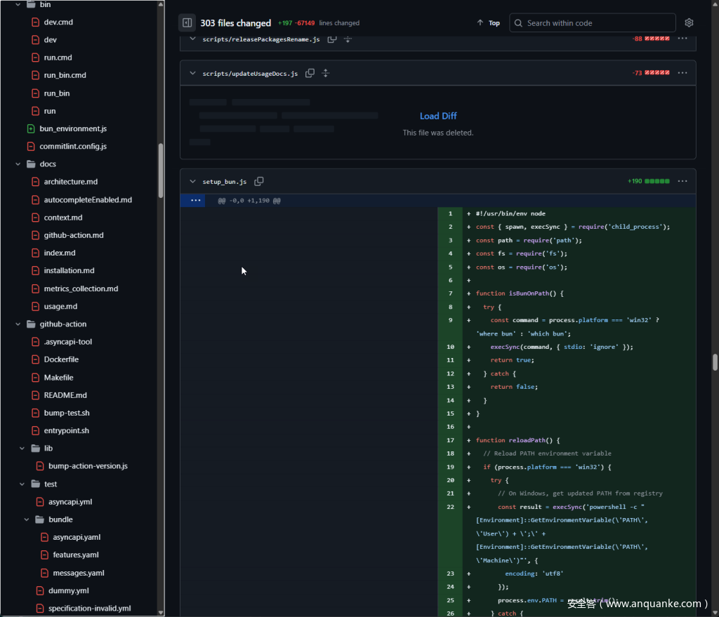 setup_bun.js安装 bun(JavaScript 运行时),再通过bun_environment.js执行实际有效载荷。 - 不再使用硬编码仓库名,而是生成 随机仓库标识符,增加溯源和检测难度。