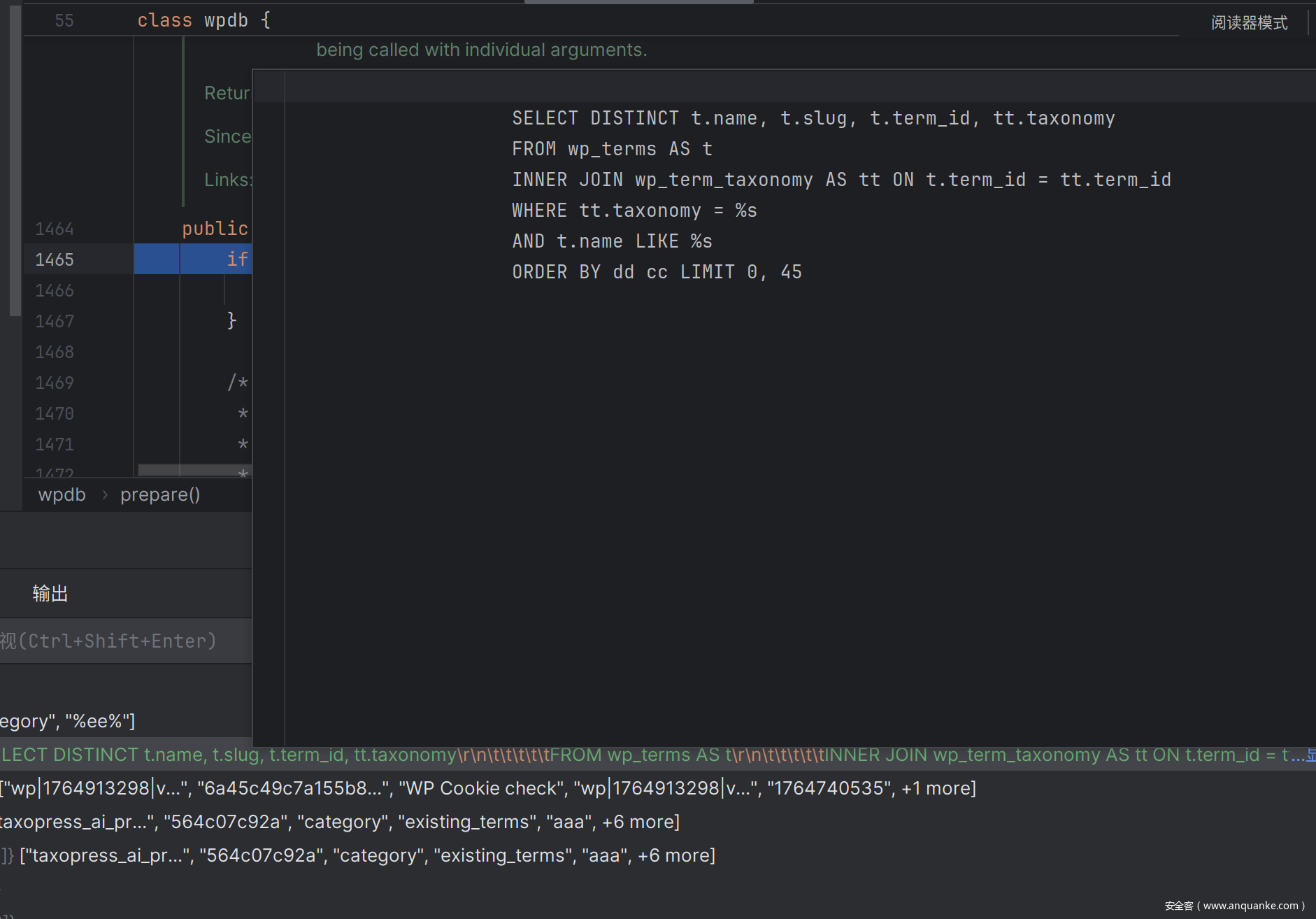 $existing_terms_orderby– 对应漏洞点中的$order_by -