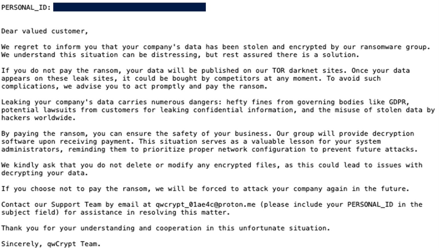 GOLD BLADE 历来以 “黑客雇佣” 模式窃取企业敏感商业机密,如今已演变为一类复合型威胁组织。尽管间谍活动仍是其核心攻击手段,该组织还开始 **“选择性投放 QWCrypt 勒索软件”**,借此将非法入侵直接转化为经济收益。