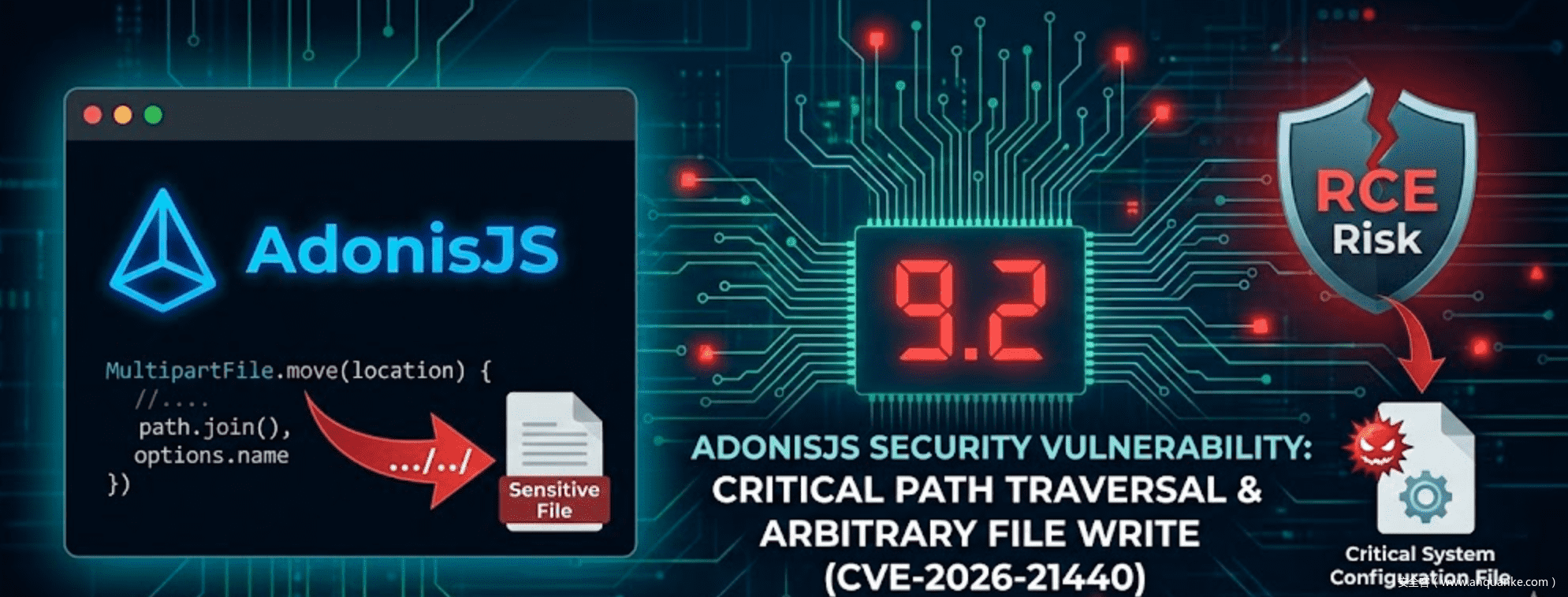 一款以易用性与高效性著称的主流全栈式 Node.js Web 框架AdonisJS,被曝出严重安全漏洞。该漏洞 CVSS 评分高达 9.2 分,存在于框架的文件上传处理模块中,远程攻击者可借此覆盖服务器敏感系统文件,甚至可能实现远程代码执行(RCE)。