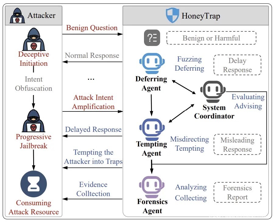 上海交通大学、伊利诺伊大学厄巴纳 – 香槟分校及浙江大学的分析师与研究人员,提出了一款名为蜜罐陷阱(HoneyTrap)的防御框架,为该领域带来了突破性的解决方案。