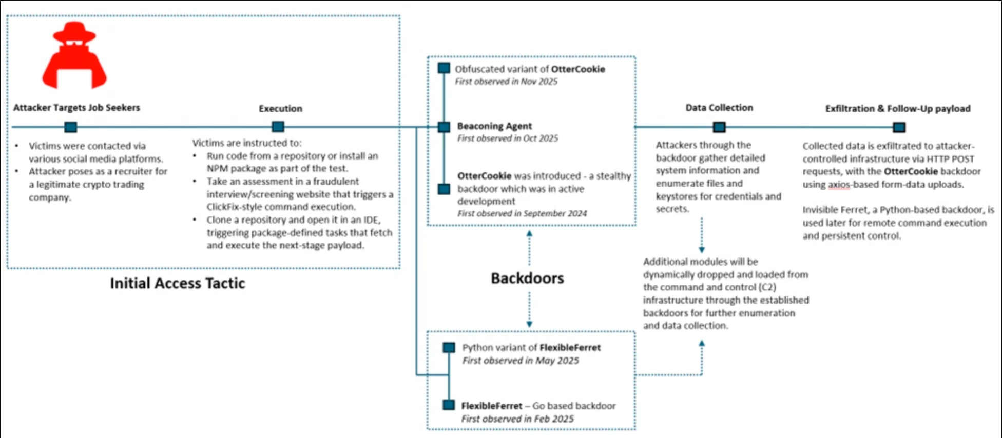 - OtterCookie:一款隐蔽后门,用于深度系统侦察与凭证窃取。