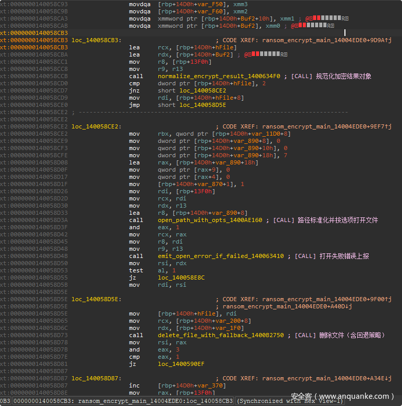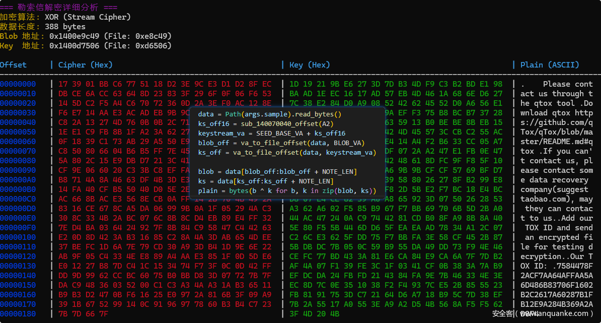 从实战角度判断,该家族并非粗糙型勒索工具,而是一套具备可扩展性与可复用性的成熟实现。经对加密算法的详细分析可以确认:在没有攻击者RSA主私钥的情况下,无论是暴力破解还是提取内存残留密钥,文件恢复的可能性基本为零。