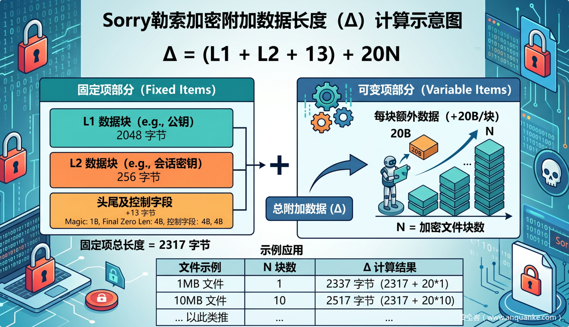 综上所述,被Sorry勒索软件加密后的数据长度计算方式如图所示: