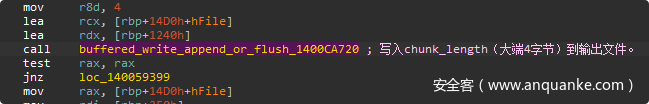 前置为4字节chunk_cipher_length,大端顺序。后续为与之长度对应的密文数据,且chunk_length = plaintext_chunk + 16。