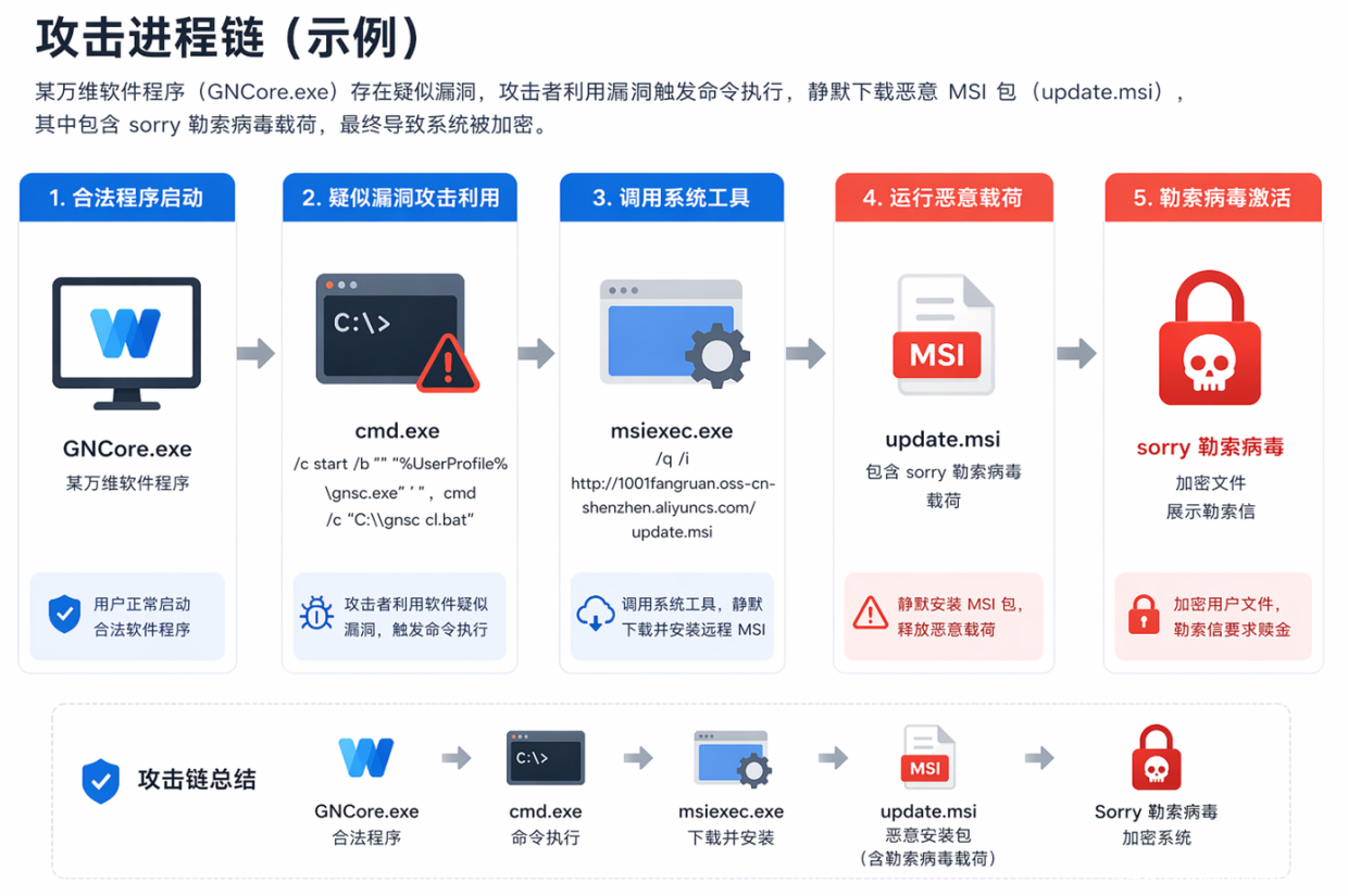 本轮的Sorry勒索软件的典型攻击进程链如下: