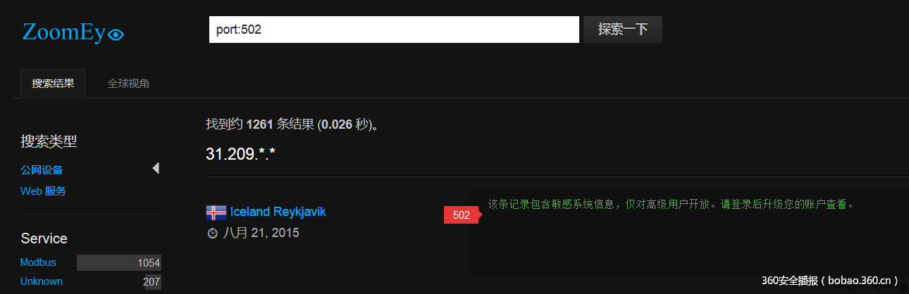 ZoomEye工控专题: http://ics.zoomeye.org/