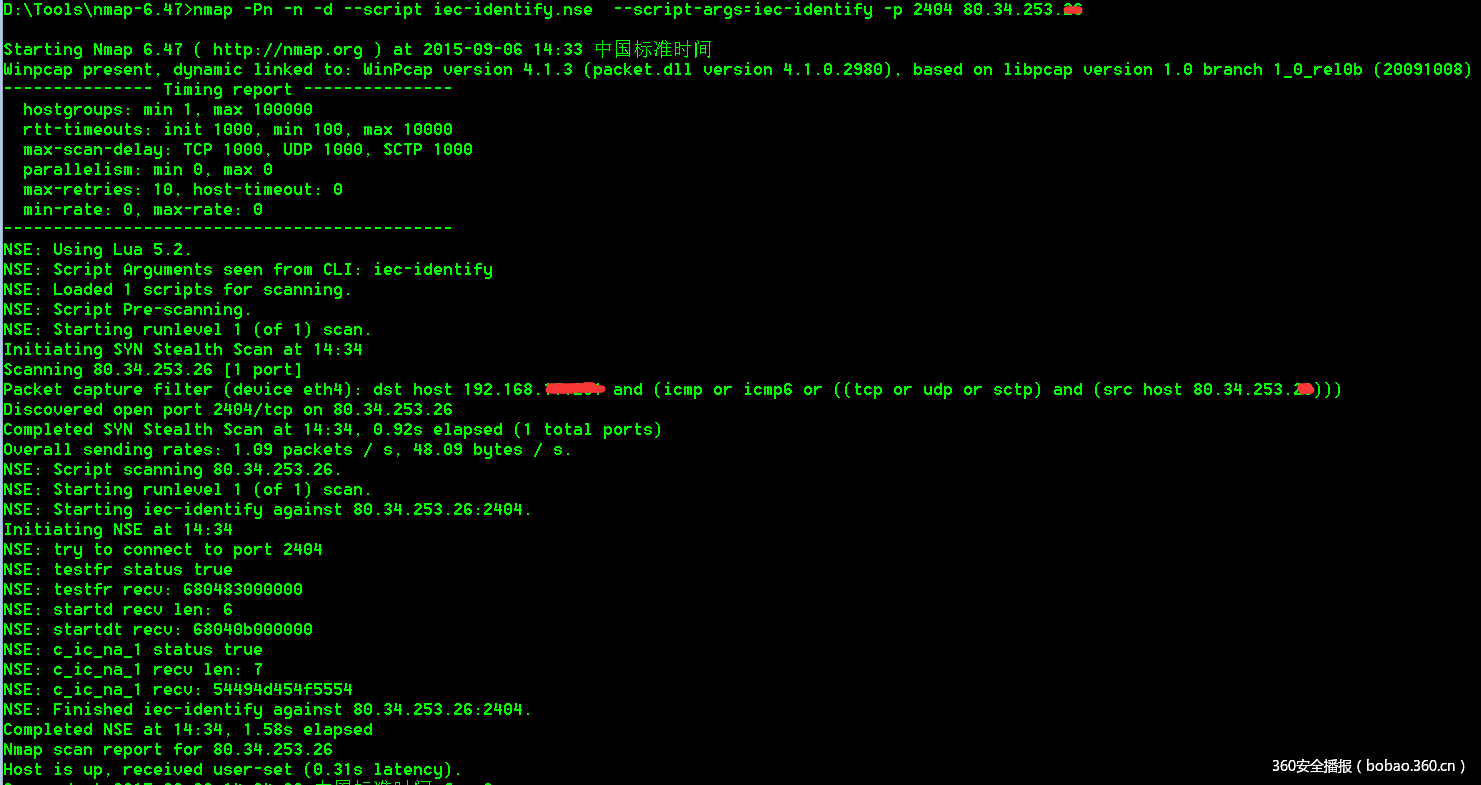 nmap -Pn -n -d --script iec-identify.nse --script-args=iec-identify -p 2404 80.34.253.*