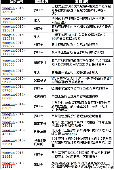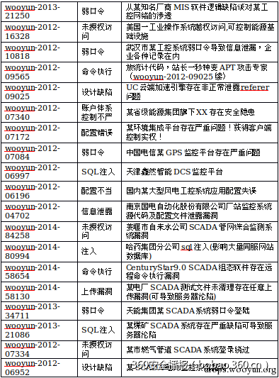 针对乌云主站的漏洞进行关键字搜索:工控(31)、SCADA(15)、Modbus(9)、PLC并进一步整合得到如下列表。