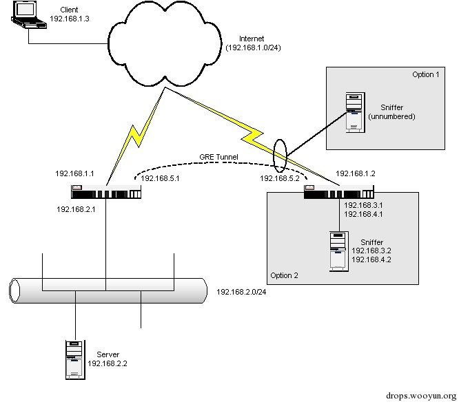 这种使用GRE隧道和策略路由的技术最早在Phrack由Gauis发表的第56篇文章“Things to do in Cisco Land when you are dead” (http://www.phrack.com/show.php?p=56&a=10),Gauis的方法使用tcpdump修改的proof-of-concept(poc)程序,来在被嗅探的路由器和一台Linux之间建立一条GRE隧道。