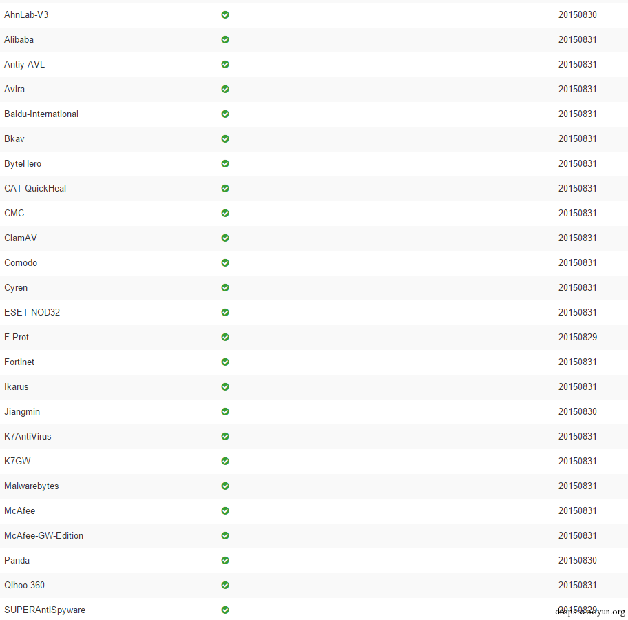 各杀软厂商对shellcode这种检测和防御也不够严格,直接从msf中提取的shellcode,没做任何变形和过杀软处理,然后virustotal网站上扫描结果如下: