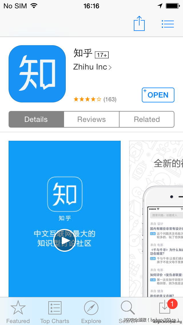 客户端启动受感染的App后,自动启动AppStore,并显示目标App的下载页面: