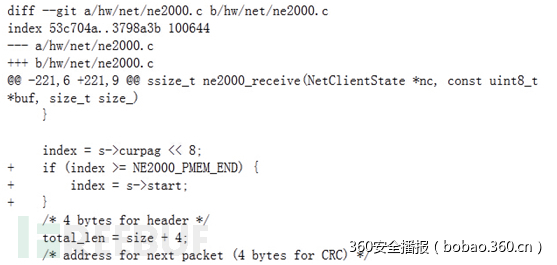 官方提供了对该漏洞的补丁,其中在ne2000_receive函数中增加了对索引边界的检查,防止了缓冲区溢出的危险。建议使用qemu的厂商尽快采用该补丁,以免黑客利用该漏洞对业务造成影响。