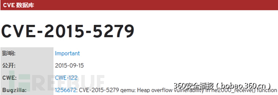 CVE-2015-5279被qemu官方安全团队定义为高危漏洞,一旦被黑客恶意利用,可以实现拒绝服务攻击,虚拟机逃逸攻击。在成功利用该漏洞之后,黑客进而可以控制宿主机以及该宿主机上的其他虚拟机,进而造成企业的敏感信息泄露,内网被渗透的可怕后果。