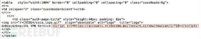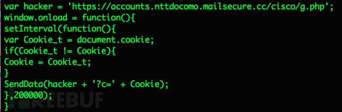 不过安装在Cisco VPN的后门,相比之下还不完善。它只是将恶意的JavaScript代码加载到员工登陆的网页。不过因为JavaScript托管在外部网站而且又通过HTTPS加密连接访问,其隐蔽性还是相对较强。