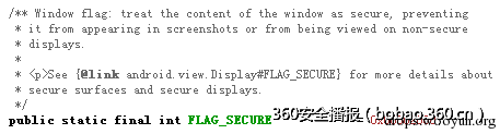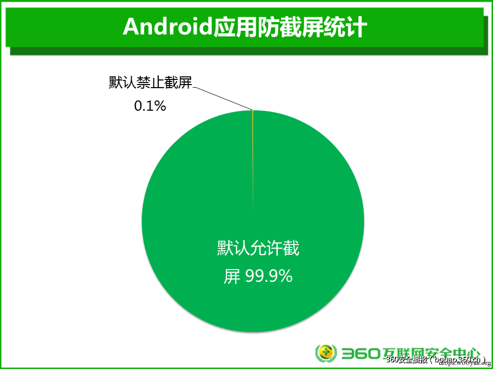 根据360互联网安全中心数据显示,Android平台应用软件中默认开启禁止截屏(录屏)功能的约占0.1%,即大约99.9%的Android软件都没有抵御这种威胁的能力。