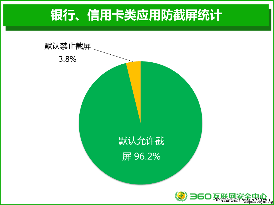 统计国内234款手机银行、信用卡Android客户端软件,其中只有9款默认开启禁止截屏属性,即这234款银行类应用中只有约3.8%能够抵御这种威胁,余下96.2%遇到这种威胁时均无法保证用户账户信息的安全性。
