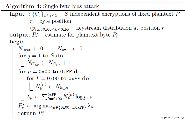 最后给出针对单字节偏移的明文概率估计的整体算法。