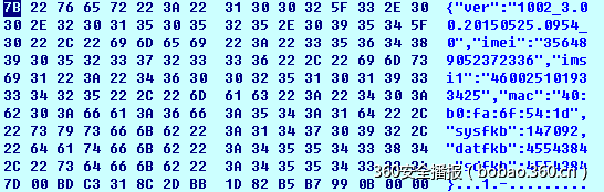 注入后,发送用户手机信息(包括病毒版本、IMEI、IMSI、MAC地址等)到远程服务器(v9bt.heycould.org/crutch):