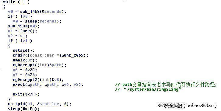 长老木马三代核心主体模块debuggerd与此子模块耦合度非常高。比如子模块由虚假debuggerd来启动,而且子模块运行时需要访问由假冒debuggerd下载生成的文件读取远程服务器地址,下载地址等。经过木马作者的“精心改进”后,子模块从“私生子”华丽“蜕变”为长老木马核心模块。