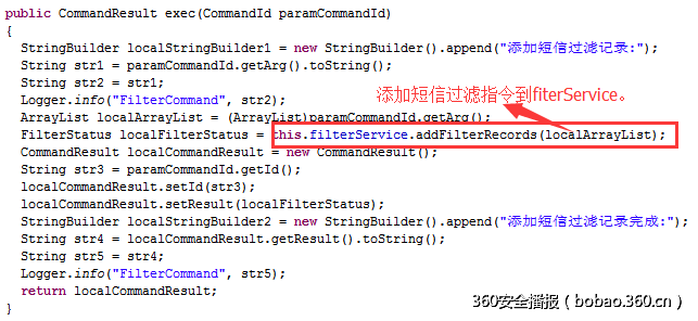 mojito插件:完成手机短信监控的功能,过滤关键词由远程服务器下发,主要屏蔽SP扣费业务订购成功或确认短信,使用户无法察觉到自己订购了SP业务,短信监控相关部分代码如下: