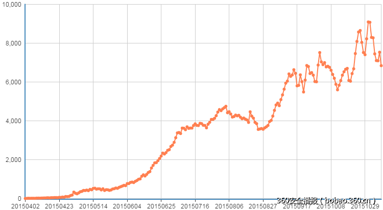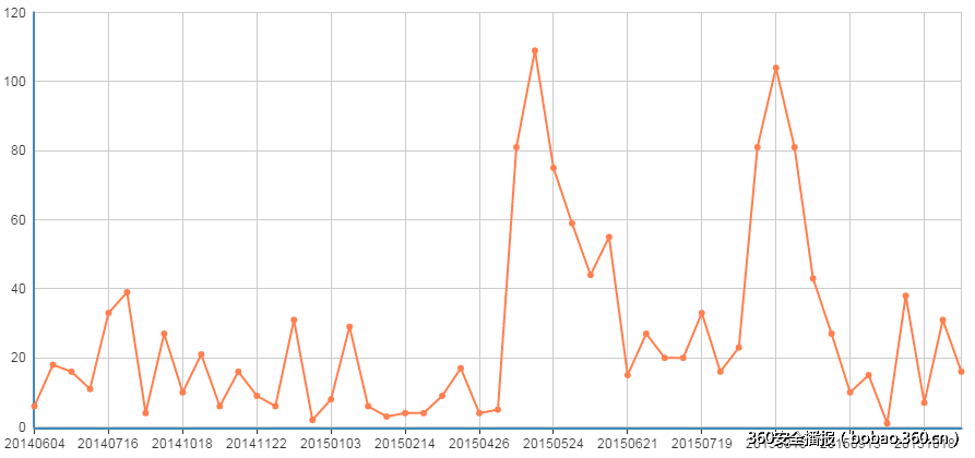 我们从360安全中心后台统计该木马总感染量已经超过80万,近半年感染趋势如下图所示: