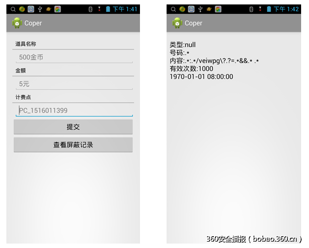 Redbean模块注入到Phone进程后具备了与Phone进程相同权限,可以获取敏感短信内容(比如手机验证支付密码)、私自订购SP业务、拦截短信(拦截删除SP订购成功短信)、后台拨号、关闭WIFI、打开G网等。