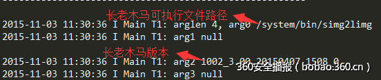 arg0=长老木马路径、arg1=null、arg2=长老木马版本、arg3=null。