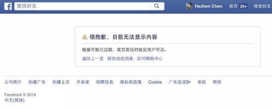 点黑客页面附带的超链接处,跳转至Facebook页面后显示页面设有浏览权限,无法显示。