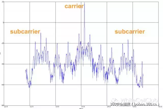 得到12.71MHz卡片向读卡器进行信号传输时的波形:
