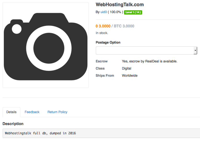 首先由CSO报道,有人正在用“uid0”的名字在暗网的地下市场The Real Deal上许诺销售这三个数据库,打包售价7.2比特币(按当前汇率约合4752美元)。