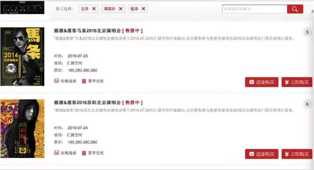 一、永乐票务官网www.228.com.cn 进入首页后,依次点击“演唱会-北京站-摇滚”;