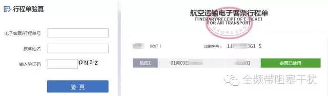 B.中国航信网站(网址见本文附录)提供了行程单验真查询,可以在拿到行程单后都可以在网站上输入电子客票号码和姓名,直接查询真伪,如下图所示: