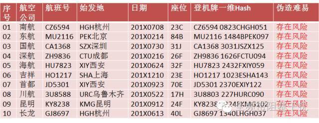 下表是亲测的国内大部分航空公司登机牌现状(全部基于真实登机牌,为防信息泄露,原始数据已做混淆处理):