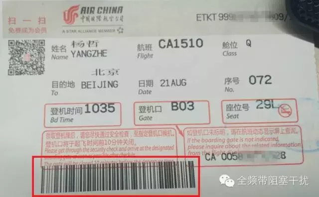 国际航协2005年定义了纸质登机牌的二维条码标准。在2008年二维条码标准扩充包含移动手机的二维条码,单航段条码内容包括:始发地、目的地、航班号、航班日期、舱位、座位号、登机序号等197位信息。下面我们就对一些实例展开分析,注:下列登机牌有些来自互联网公开搜索结果。