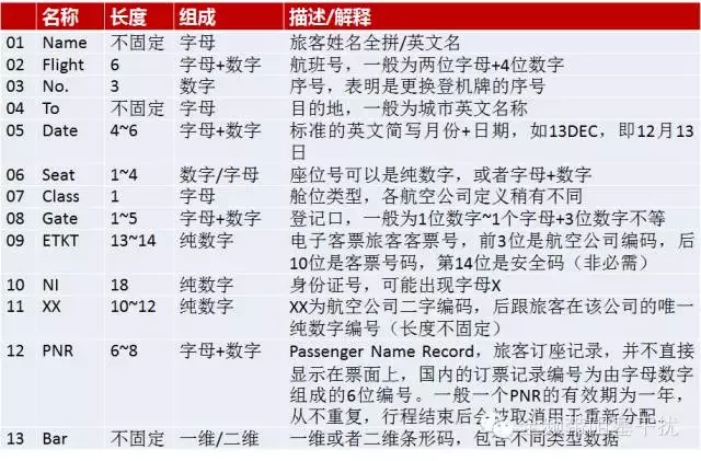 读取上图中登机牌的编码(红色框),获得如下数据: