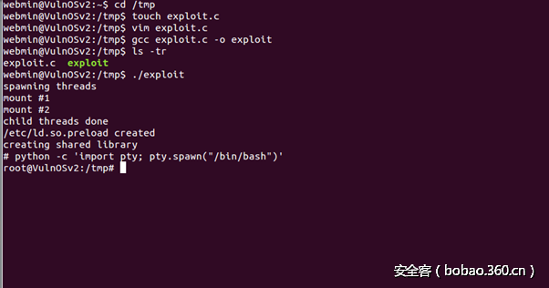 这样当我们再次运行./msgmike命令的时候,就会触发当前目录下的cat(/bin/sh),从而提权。完整的exploit如下