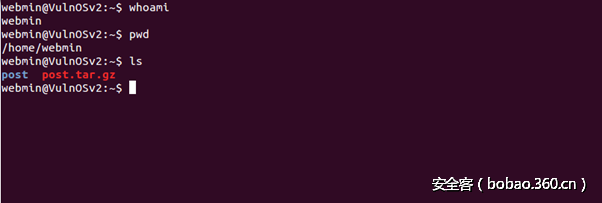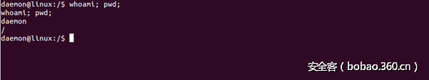 通过截图可以得知,当前用户为"daemon",我们接下来提权"daemon"到"root"