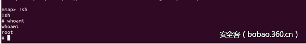 因为nmap有SUID位,所以通过“!sh”我们会获取到一个root权限的shell