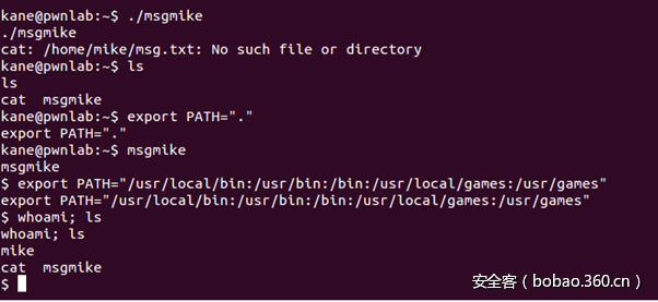 通过报错信息我们可以看到msgmike调用cat命令读取/home/mike/msg.txt文件。
