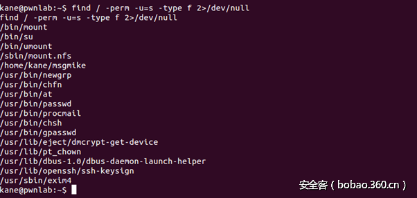 这次我们通过寻找系统里可以用的SUID文件来提权。运行: