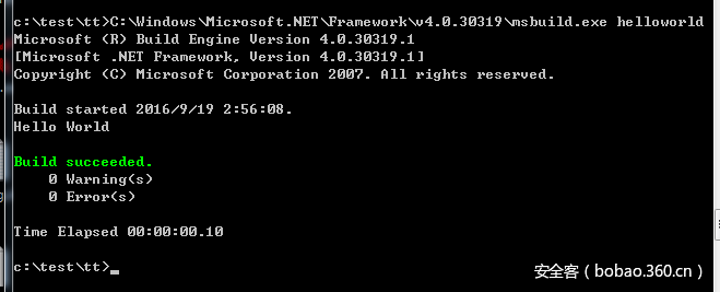 C:WindowsMicrosoft.NETFrameworkv4.0.30319msbuild.exe helloworld