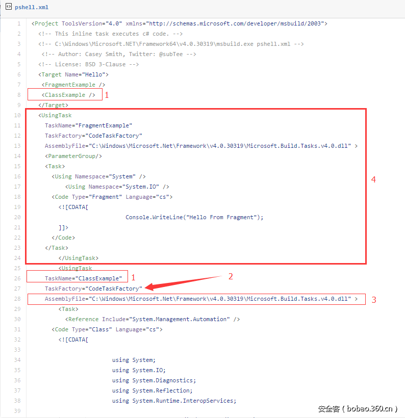 本文将基于他公开的POC,并结合我的研究心得,介绍以下MSBuild的应用技巧: