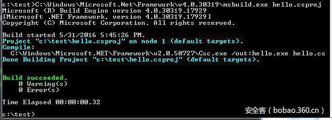 C:WindowsMicrosoft.NetFrameworkv4.0.30319msbuild.exe test.csproj