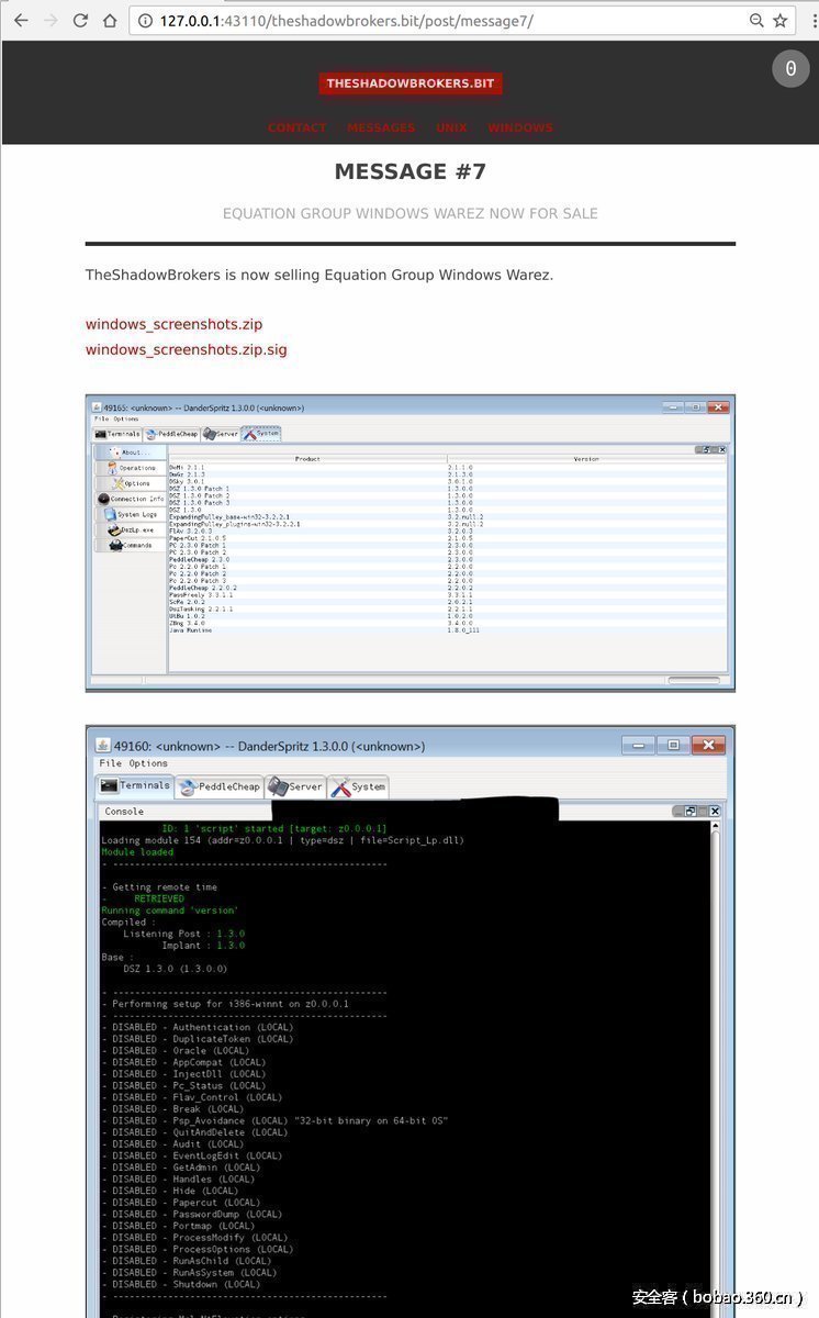 在Shadow Brokers售卖黑客工具再一次失败后,放出最后一批Equation Group的文件,并宣布退出。
